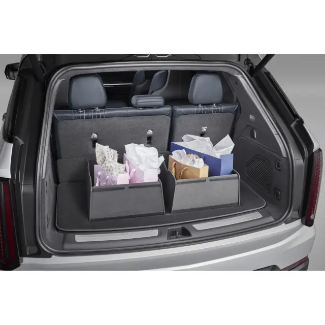 Help protect your vehicles cargo area flooring from the rigors of everyday use with a Cadillac Accessories Premium Carpeted Cargo Area Mat. It delivers additional protection, providing a barrier against dirt, debris and spills, and other common mishaps while enhancing the overall cargo area appearance. Designed to fit the contours of your vehicles cargo area, it is removable for easy cleaning and features a high-friction backing. Includes two Integrated Cargo Bins allowing you the flexibility to carry and contain smaller items of various sizes. The four sides of the bins easily fold flat into the mat for storage when not in use for seamless integration. For a unified look and protection throughout your entire vehicle, dont forget to add floor mats, available in kits that include first- and second-row mats for most Cadillac passenger cars. Floor mats are available for the first, second and third rows of most Cadillac SUVs. A variety of cargo liner options are also offered for most Cadillac cars, crossovers and SUVs.